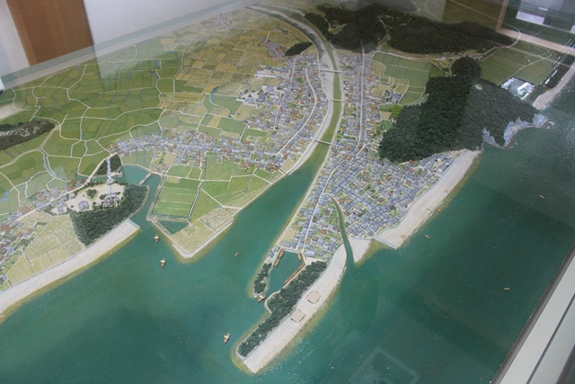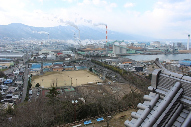 な、と想像する(違うかったらごめんなさい)。いちばん上の展望台に行くと、瀬戸内海が一望できる。また、天守台の一画に考古資料の展示もあった。作り物とはいえ、展示施設があるわけだが、入ったところでもらうパンフレットにある程度の、川之江城の歴史とかの解説もなかった・・・。近世の歴史についても、せっかくの空間や壁面を使って展示できるのに、そうはなっていなかった。