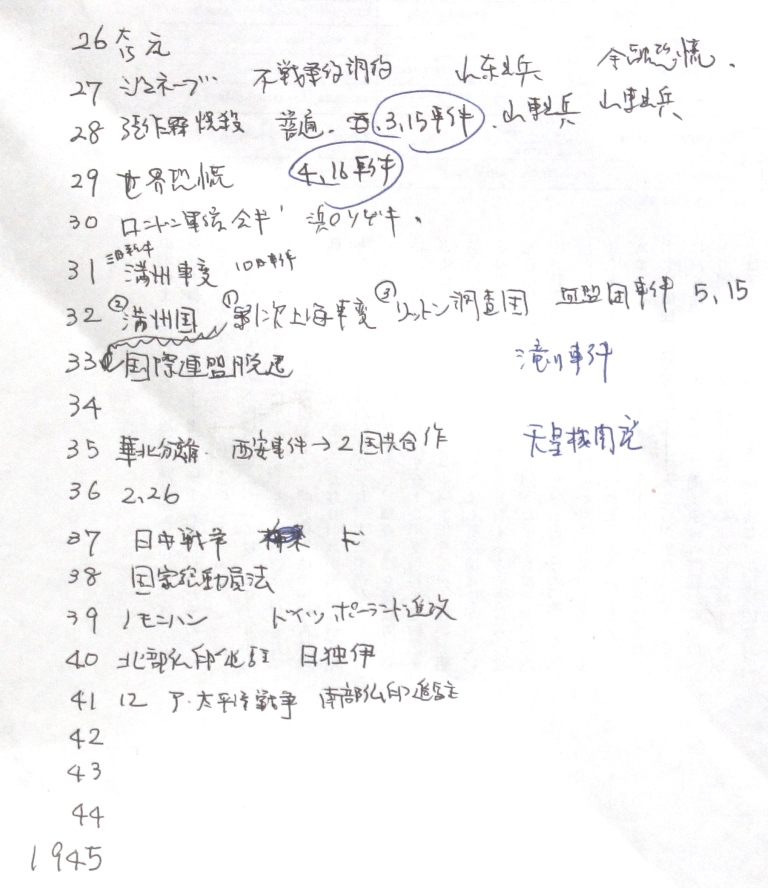 ◆右画像は、前に家にある昭和史の本から、できごとを書き上げていたもの。