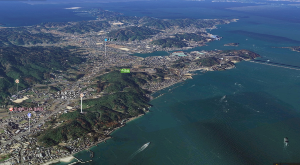 速道路調査で谷部を掘ったときの流路から出た祭祀品を含む木製品をみせていただく。きれいものでした。カケの獣医学部新築現場に行きたかったが、やめて、今治市街に。