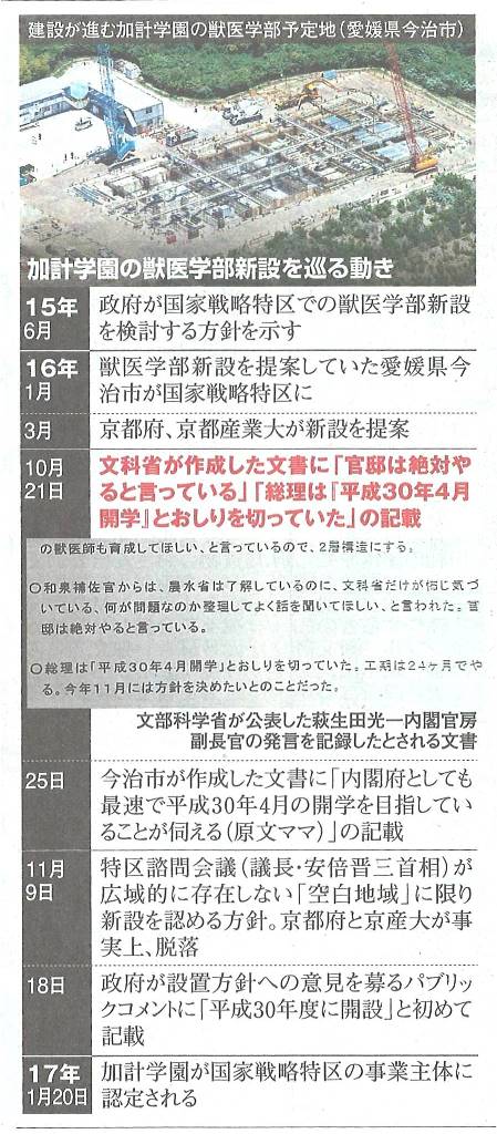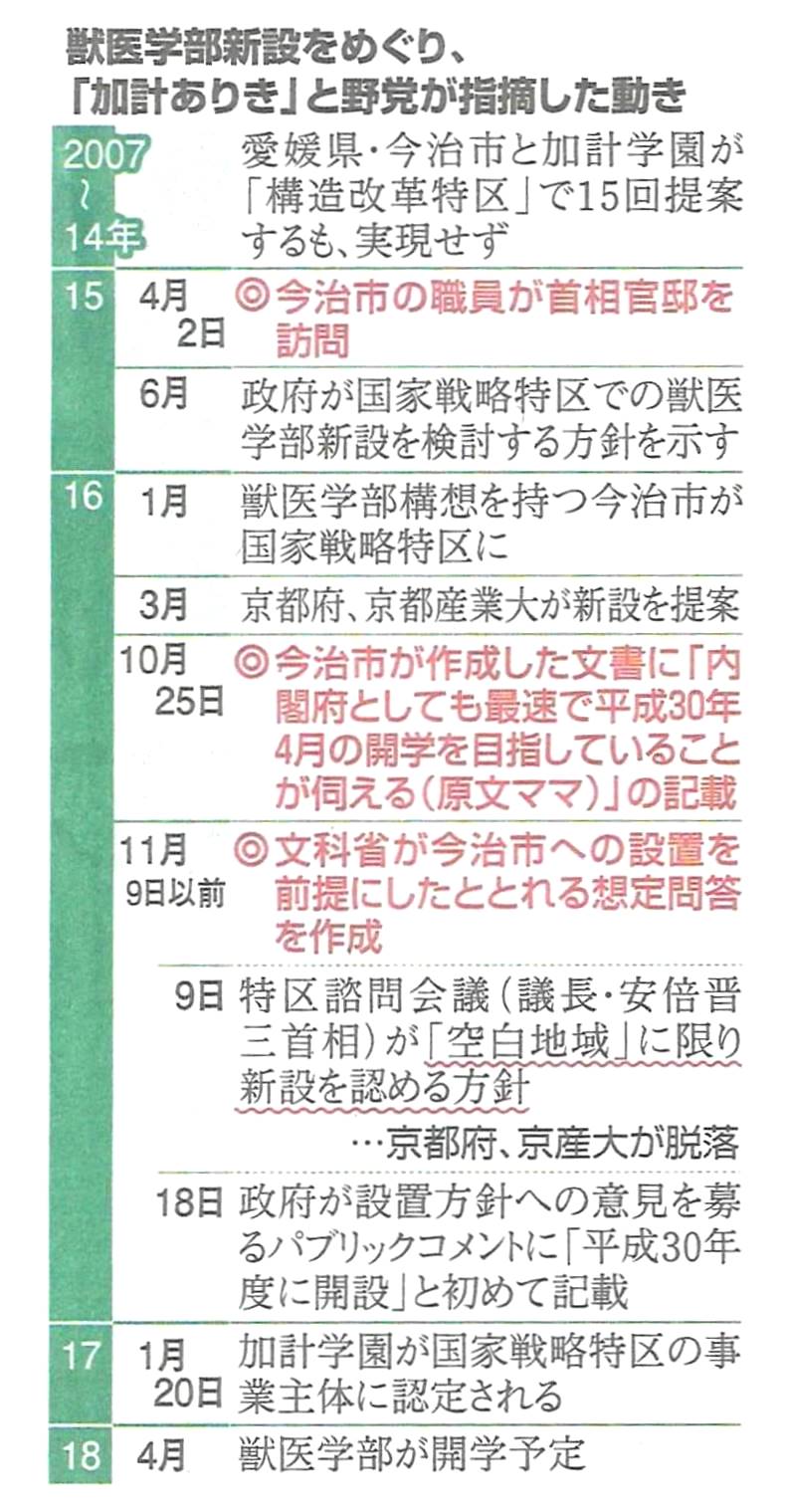 ◆科研などで、利益相反の書類を書いたりするんですよ。世の中そうなっているのに、市長の親族会社が工事を落札したり、なぜか特定のカケに獣医学部新設の便宜を図ったりする、旧態依然のことが、まかり通っている。カケの長男が獣医師なんだそうですね。息子に新設大学を作ってやる、それだけのこと。だが、4月開学のそんな大学に就職したい先生が集められるのだろうか。学生募集は7月には始めないといかんわけで、これもまた定員に達しないかも知れません。ましてそんな大学に赴任する教員がほんとにそろえられるのか。文科省は、ここでもまた力を発揮できるんではないですか。
