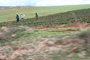 時期にあたる。小学校6年、中学校5年が義務教育で無償。そのうえが専門学校か大学、ということだったか。専門学校というのは、教員養成を含めた基本的な職種の職業学校のようです。あとでいう500人のクンツゥルワシ村には小学校はあるが、中学校・専門学校はサンパブロに行かないとない。モライ遺跡からの帰途、学校は終わっているはずだが学校で集まりがあったのか、家に帰って行く子供たちを見た(上右)。それと雨期に入り、畑に、これなんでしょうねジャガイモ?を植え、水をやる人たち(上左)。盆地には水路があるようだが、普通の斜面地の畑地には水路はなさそうにも見える。この水は、畑地脇に水溜によるものか、村の水道水なのか、ようわからん。