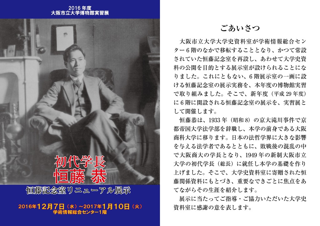 ◆今年度の博物館実習展は、12月に恒藤、1月10日から文・理の独自展、あわせて2時期3つとなっ