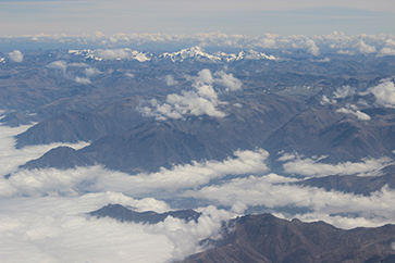 日、ほぼ9時代のLCペルー便でクスコに向かう。朝、当山ペンションの朝ごはんをかきこみ、外でタクシーを拾おうとするも、空港に行くのを何台かに断られるが(込むから)、なんとかタクシーに乗る。外はかなりの霧。飛行機が欠航になることもあるというから心配も。が、まあ日本の盆地の霧と同じく、日が高くなってくると晴れてきた。9:25くらいに離陸。アンデス山脈を越える。