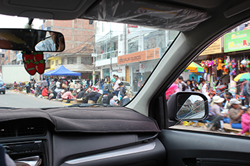 なされ(むろん照屋さん)、タクシーに乗り込む。チンチェーロ・モライ・オリャンタイタンボ遺跡をまわる予定。クスコ市街地を抜け車は進む。写真はクスコの露店の写真。