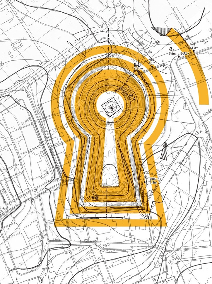 ◆来週行けないので、金曜日にでかける。京都縦貫道をはじめて使う。前方部前面ほか、整備に必要な確認調査のだめ押しの調査。昨年前方部東北の周溝コーナーがきれいに検出され、今回の調査とあわせて、東側側面の外縁区画の状況がとらえられてきつつある。墳端は畑地としての開墾等で削り込まれているため、基底部含めて既に失われており、定点はえられないものの、下面テラス、下段斜面、裾部と、新たな測量図にもとづく全体的な斜面やテラス面の寸法と、発掘で確認された墳丘残存面の推移から、一定の無理のない推定復元はできるだろう。