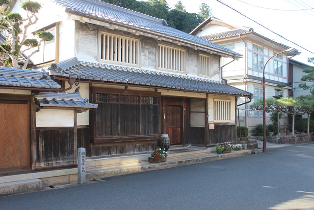 説板かと思われるものを見かけたが、車で通過したのでわからず。まちあるきは、インターチェンジから海へまっすぐにつながる南北道の西側、円弧をえがく2本の街路沿いが雰囲気がよくのこっており、重文になっている旧三上家住宅などを見学し、帰途につく。