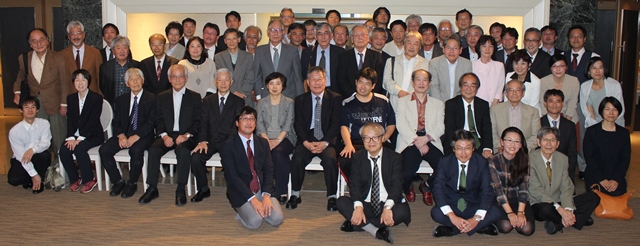 ◆会場に入り、空いている席をさがして着席。隣は初村君であった。式は乾杯の挨拶の最中。主催者側の挨拶に、申先生のご挨拶もあったが、聞けず。偉い人たちの席には近づかず、2次会を含めて、久しぶりの人たちといろいろと話をすることができました。そこそこワインを飲む。1次会の終了時には会場から外へ出たところで記念写真。カメラマンの滋賀県Tさんにカメラを渡し、ちゃっかりと生画像を撮ってもらいました。2次会は同じホテルの6階へ。終了後、森ノ宮駅に向かい、3次会に行く人は行く、まあここまでと帰ってきた。