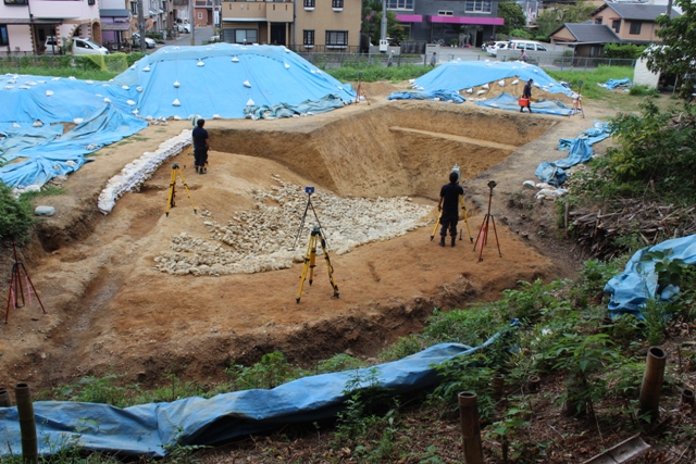 ◆今週は大学院入試のため、火曜日・水曜日はおりません(午前は顔を出すかも・・・)。台風が心配ではあるが、まあなんとかなるのでは。明日、戦力がどのくらいか。朝イチでシートをめくりレーザーの補足をして、終了後、一斉に平面図にかかる。(1)墳裾の処理、(2)埋葬施設の始末、(3)テラス面の掘り上げ、という課題が残っており、14日終了をめざそう。