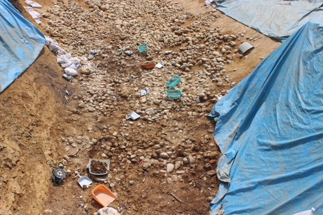 終了時点の全景も挙げておきます。葺石は、ひととおり検出し終えたかな、あとは清掃、というところにこぎ着けた感あり。