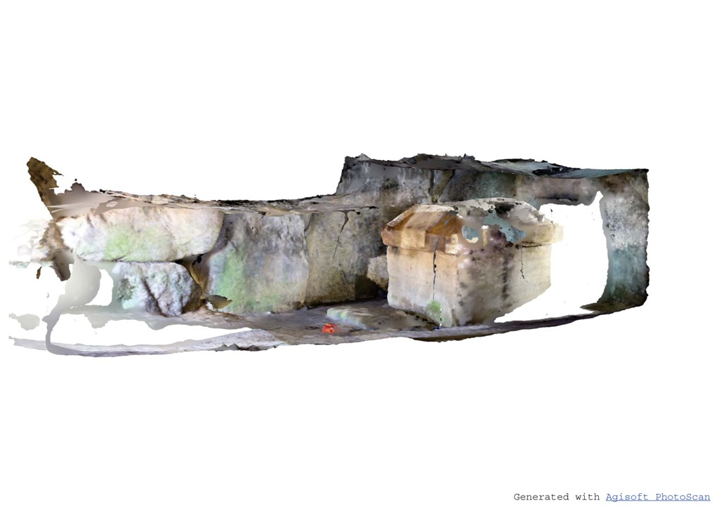 狭いので撮れていないところもあるし、こっちが担当した開口部から羨道部の画像は組み込んで貼り合わせてないが。また処理にものすごく時間がかかるので、低密度にして処理したらしい。
