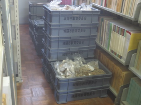◆さらにコンテナ搬入。KR15の2箱を搬入。土器片座標取り上げの箱を搬入。未洗いのKR15はまだヤマのようにあるが、ぼちぼちと参りましょう。水鳥の嘴や胴体の埴輪が城陽市の方で接合を進めてくれている。その写真を撮ろうと思って、撮りませんでした。今日の主役は写真の埴輪。これ朝顔の口縁ですが、これアナ窯焼成ですよ。久津川車塚の埴輪は、確かにほとんどは野焼きでいいと思うが、今日洗ったもののなかには、ほかの円筒や、なにかの形象と思われるものなど、「けっこうパリパリ」に焼けているものが目についた。