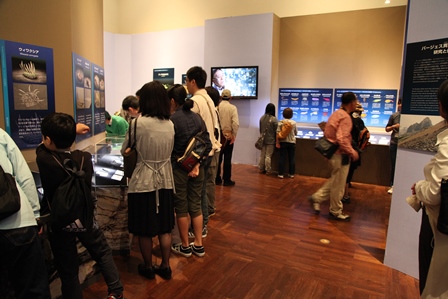 ◆ともかく、この特展の人の入り。宣伝費もけっこうかけていると思うし、カナダからアノマロカリスの化石などがやってきているとはいえ、こんなにも潜在的な関心はある。が常設展は寂しい。この落差が悲しい。すいません、お世話になっているのに。が、常設展、何度か見ているはずだが、今回、こっちが博物館科目をもつようになったという点もあるのか、特展との落差が顕在化したこともあり、前には意識しなかった常設展の古さをしみじみ感じてしまいました。器や展示ケースはそのままでも、その範囲でもやれることがあるのでは、と思ってしまう。