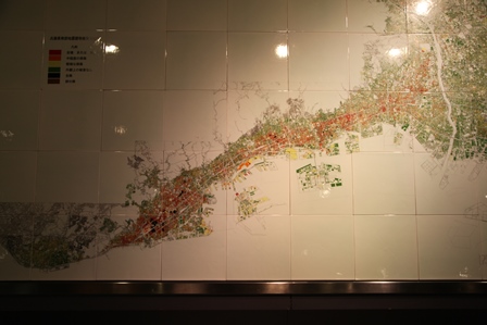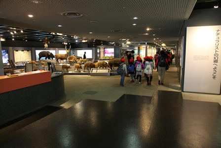 ぶりだった。県立だけに立派です。昆虫の標本はやはり、きれいし人気がありますね。それと恐竜。地質は地味で子ども達には人気がないかもしれないが、工夫の余地はあるのでしょう。ひとを冠しているように、兵庫県各地の自然環境のなかで、人がどうかかわってきたか、という面の展示も散りばめれられている。北摂のクヌギの炭焼きとか、5人家族が1週間でどれだけの食糧や水やらを消費するのかを示したコーナーや、阪神淡路大震災の陶板ぱねるとか(実に詳細なよくできた図です)。