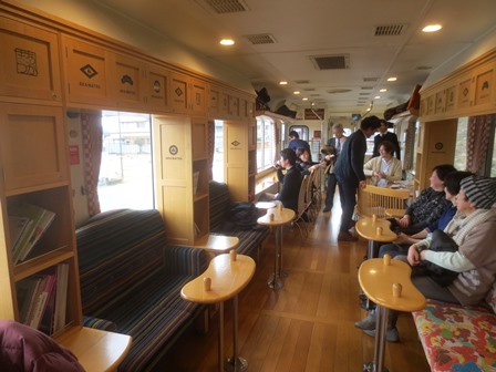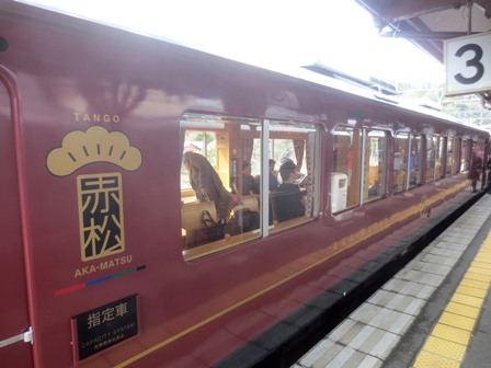 ◆福知山→宮津→橋立まで行き、そこから丹後鉄道。これが赤松1号というやつ。なんじゃこれ?。あとで調べると1日2本、というか上り下り1本ずつで、ちょうどそれになったのである。特別内装の観光列車で、2両編成、普通(自由席)1両、特別車両の指定席車両1両。あいていたので、指定料金を払い、特別車両に乗り込む。おもわず地ビールを・・・、すいません。豊岡まで乗っていきたいが、