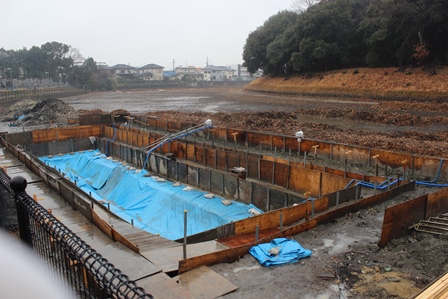 ◆昨年度が後円部で、今年が前方部。これだけの護岸工事は、宮内庁としてもはじめてだろう。同