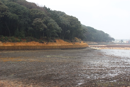 で護岸工事の様子