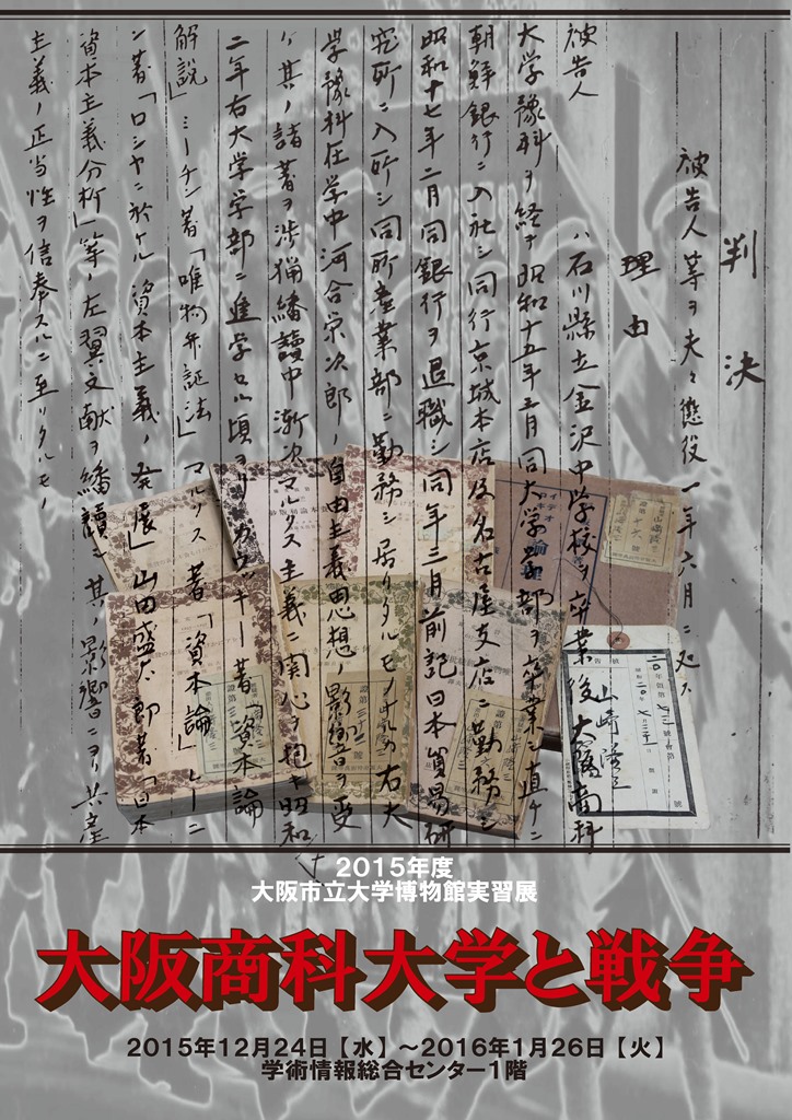 ◆このところ気になる新聞記事を見ても、マメに切り取って保存することができていない。数日経って古新聞をめくる気力もない。なので、その時の引っかかりだけで流れていくのはよくない。博物館実習展で、戦前の「大阪商大事件」を勉強させてもらっています。マルクス主義経済学者はどこでも目をつけられていただろうが、自由主義的な考え方、あるいは反戦・厭戦の気風となると、大学によって差はあろう。しかし大阪商科大学では100人くらいの学生がケルングループの運動に参加しているという、そこは客観性が必要であれ、全国の大学でもレジスタンスの隠れた拠点になっていたわけです。しかしやがて特高に目をつけられ、30人くらいが治安維持法違反で検挙され、取り調べを受けた者が60人くらいはその外にいるという。