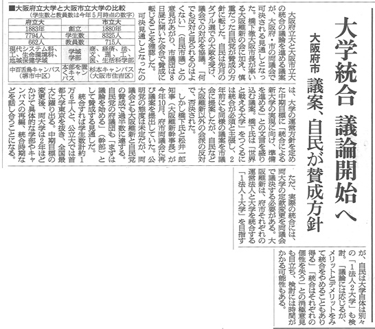 ◆橋下市長の勇退。しばらく前には府?自民党の方針変更で、府・市両大学統合案が可決見込み