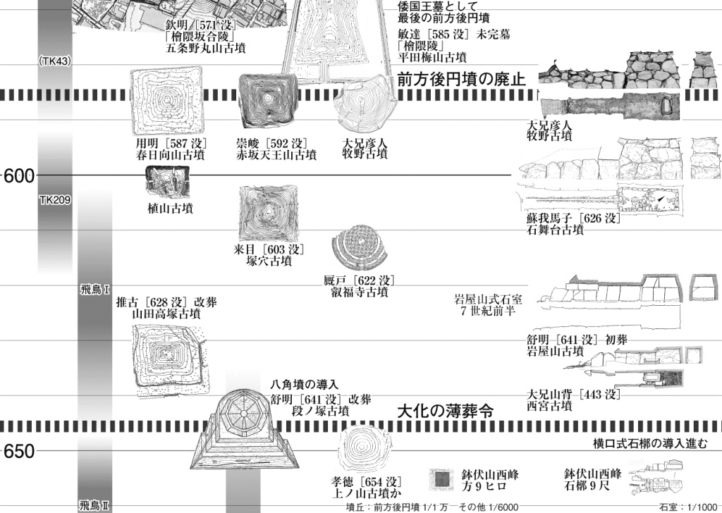も、学情の会場には向かわず、雄山閣の仕上げ。ようよう、出しました。最後の図10を出しときます。この原稿の面白いところはこれではないが、それはできてからのお楽しみに。最後のところ、やっぱり前方後円墳の廃止の話もかかなあかんかな~、と、季刊考古学の図をいじって作ったもの。