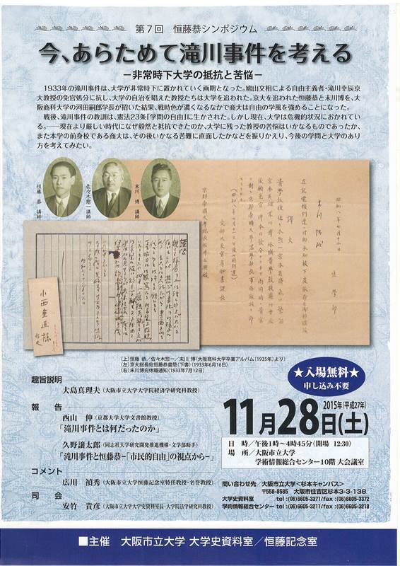 検挙を柱とするが、商大創設から、滝川事件で京大をやめて、末川博と恒藤恭を商大は迎え入れる、そのことにも触れることになっている。