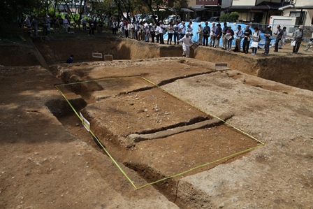 ◆早出にして8:30に現場に赴くが、城陽市教委、そして平安文化財のみなさんも早い。受付、遺物展示、掲示物、現地の遺構表示、文字説明板を立てる。そして10時スタート。午前中は300人くらい。昼休み前後は途切れるが、午後も250名ほど、合計、資料数で547ということです。
