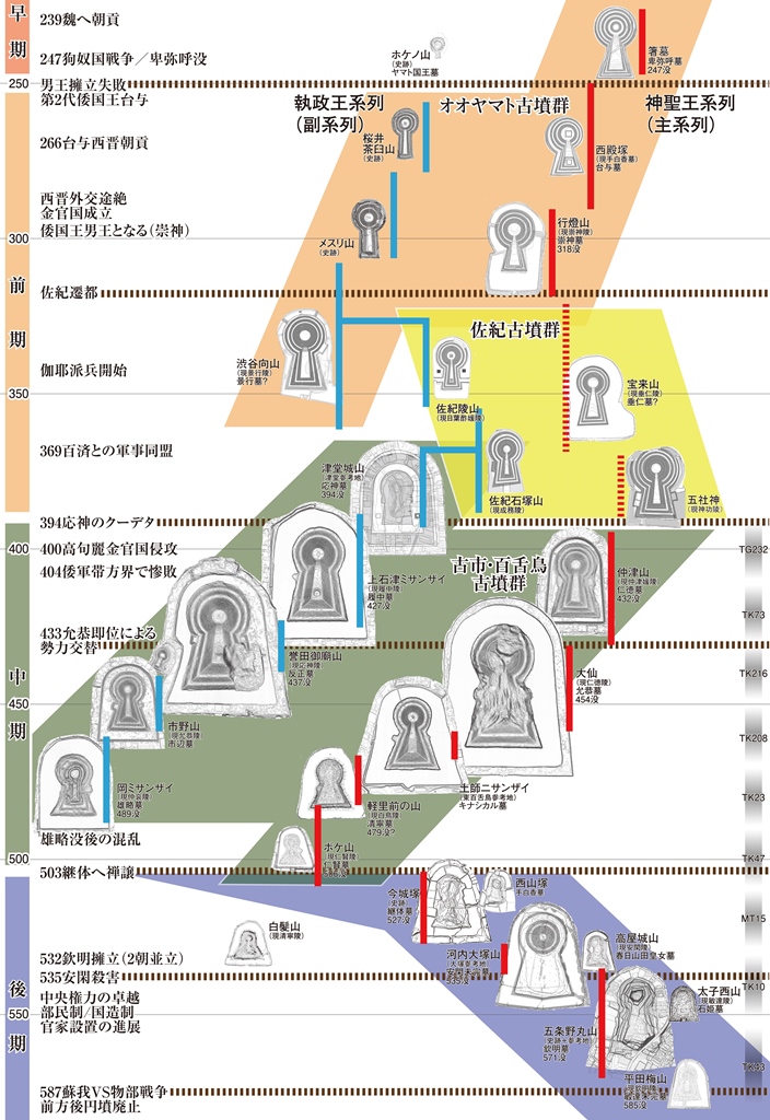 ◆5枚作ったところで、倭国王墓の系列図の修正に入り、おわっちまった。個別の図をぜんぶ差し替えた。かなり