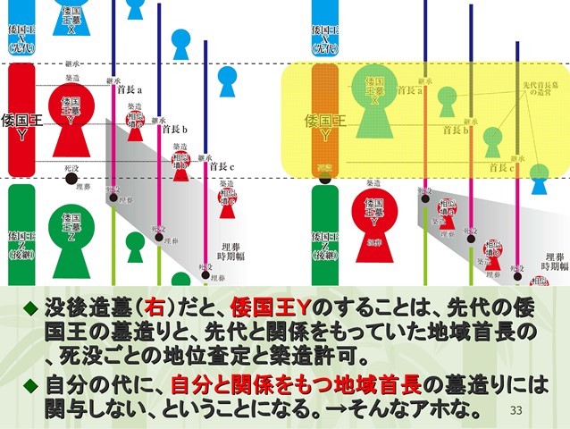 ◆王権側の論理に対し、地域での類似墳の拡散、それは前期の柄鏡のみならず、女狭穂を起点とする再編とか、関東でも同じようなことが言われているが、そういうアヤにこそ古墳時代の実相