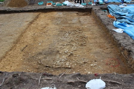 ◆朝、6:30には起きながらダウン。再び起きた時は、9:00には間に合わない時間。車塚に着いたのは、9:30くらい。山科に向かう11時まで現場。南区の調査、作業員さん1人に削ってもらいつつ、うちの学生・院生は、造り出し上面の礫出し、東西畦沿いの幅1mは、ほぼなにもなく礫もまばらだったんだろうが、やや下げすぎで段差になっている・・・。完全にピュアな面まで下げると掘り過ぎ。造り出し盛土面があり、埴輪を据え、礫を敷き、そう厚くはないそれらが遺構で、それが露出している間に表土化し、草木が生えたりさまざまな撹拌を受け、さらには江戸期の洪水層で流されたりしている。それで堆積した黄色粘質土も礫の隙間等に入り込んでいく。礫はきたない土のなかにあ