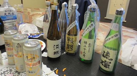 ◆詳しく書いている余裕が今回もないかもしれません。ひとまず行程を。写真は伊香保での、食事後、露天風呂に入ったあとの、幹事室での宴会で用意いただいた地酒です。