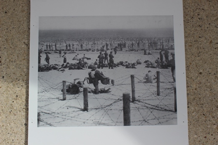 ◆昨日は、カミサンは集まりの人々で公式の食事があるのでそっちに行き、一人でしたが、この日は、一緒に晩飯を食べに出る。浜辺を港の方に行く(写真)。途中、シーズンしかやってないと思われる博物館があり、閉館しているのですが、その手前の回廊状のところで写真展をやってました(写真)。見てると、いまのオステンドの風景写真もあるのだが、けっこう過去の戦争関係のもの