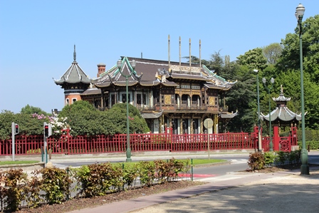 ったんだけれども、この日のみ休館ということで門は開いていませんでした。それがわかるのは後刻のことで、入り口はどこかいなと、広大な王宮を囲む外壁沿いに歩く。1935年の万博の時のものだったか、中国の建物と、いちおう日本のかな、五重塔というのが建てられ、それを移建して、いまも東洋文化館みたいに公開しているようだが、これも閉まっている。結局、かなり歩いた後、横をトラムが走っていたので、あきらめて中心部へ戻る(15:35発)。