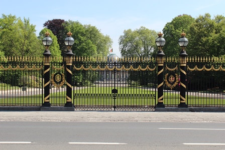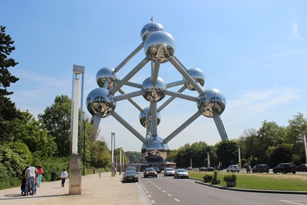 画があ る。1935年の万博の時の建物らしく、いまも国際展示場的に使われてい る。行ったときは、翌日から魚などの海産資源のコンベンションが開催されることになっており、その準備が進められていた。何度か万博があり、1958年の時に作られたシンボルがアトミウムというヤツなのだが、展望台まで行く入場料は高いのでやめる。というか、目的はラーケン王宮の植物園。