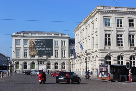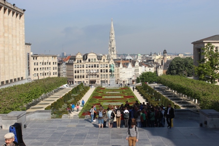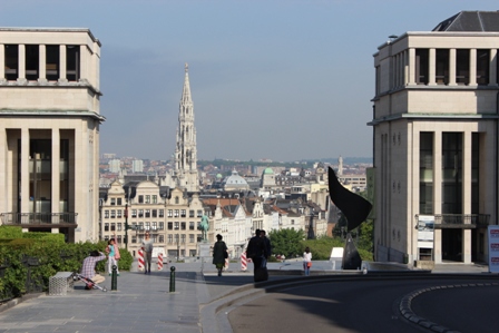 ◆右側の写真は、反対に、西側から見たところ。かなり高低差があって、美術館の石畳まで上がれば、グランプレイス方向はかなり低く、そのむこうの丘陵地が望める。