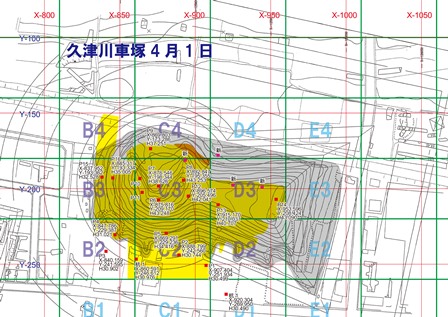 ◆次に後円部東側のP40(新)にマシンを立て、線路沿いまでを埋めていく。やった面積的には狭いように見えるが、なにより樹木が繁茂していて、またヤラレ部分で、測りにくい部分で、それにしては順調。ほぼ線路に面した古墳側の崖肩部まで、一部は到達する。あとちょっとで、ここで取れるのはこのくらいか、と3時休みのあと再開すると、バッテリーがダウン。間が空いて使うとフル充電にならないものだから、前日に充電と放電をするようにしていたが、昨日は昼間できず、家に帰ってから1回やるも、うまくいかなかったようだ。日も長くなり、あと3時間はできたのに残念。まあ、そういうこともアラーナ。