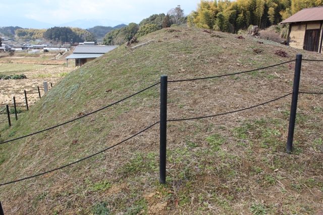 う。むろん5段の5というのに意味があるとも言われているようです。ひとまず40度とも言われる斜面部が4段分あるとされているわけだが、それが明瞭に視認できるわけではない。そのへんは、盗掘され、墳頂部にも穴を開けられ、封土がかなり崩された関係で、舒明陵や天智陵よりも改変が大きいのだろう。