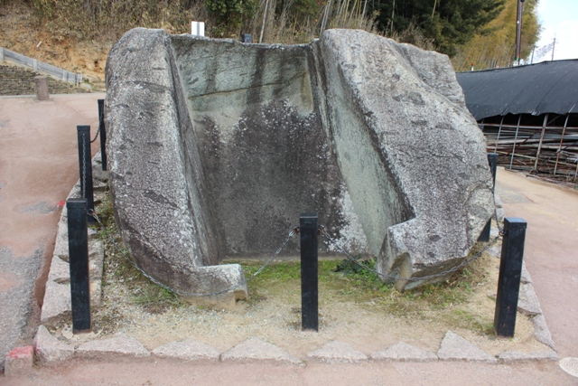 ◆で、その最下段斜面の裾部から外周にかけて、斜面基部の貼り石、地覆石、その外の凝灰岩板石ブロック3石分幅の基壇について、8角のほとんどの箇所について、昭和36 年段階に宮内庁が発掘調査をしている。それと昭和50年の末永雅雄の調査のレポートなどの記録が、『牽牛子塚』の報告書に掲載され、現時点での復元案も示され、今回の基本文献となっている。