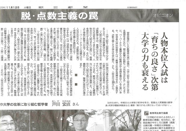 ◆11月12日の朝日新聞の記事。けっこう面白かったです。人物本位の入試というものの危うさを指