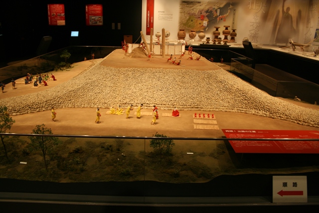 馬鹿でしたね。2階に実によくできた最新の展示施設がありました。中央 には、3号墓の模型、副葬品や土器などもホンモノです。西谷の現地脇で、実物資料を見ることができるわけです。