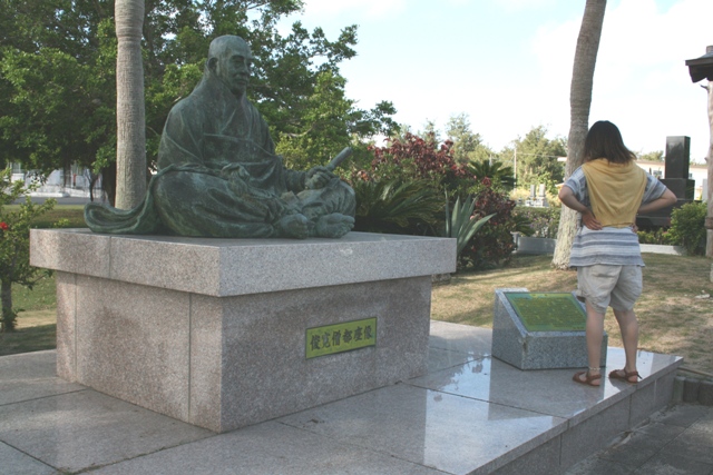 ◆そして俊寛の墓に行く。俊寛僧都。ATOKでも「しゅんかん」と入れれば変換される。「やれ連れて行け」とかなんとか、学校時代の能?とかで見たことがある。言うまでもなく鹿ヶ谷の陰謀で流されたわけである。ところが喜界が島がどこなのか、もうひとつの別名硫黄島の方なのか、ここ喜界島なのか、未決着らしい。どちらにも銅像があるという。硫黄島の俊寛は手を差し出して助けてくれ~の姿。
