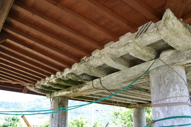 ◆それから高倉。これも全景を撮ったつもりが取れていない。沖縄と同じように、高床の倉だが、ここ喜界島でも残っているのは、見せてもらった1カ所くらいという。あらかじめ連絡してくれており、「どうぞどうぞ」と見せていただく。とはいえ、現代的改変も大きく、ほんらいのままの姿ではない。材木はよく知らないが、けっこう大きな柱と板材で、どれくらい耐用年数があるものなのだろうか。現存するこの高倉は、いつ建造されたものだろうか。