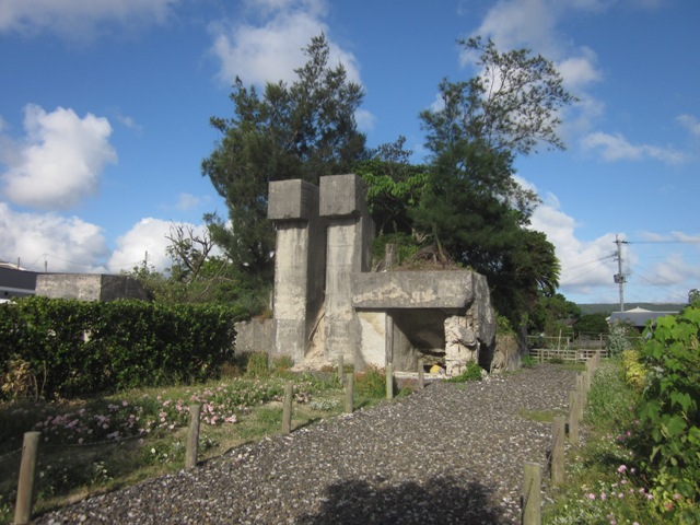 ◆大型建物に隣接する西側にも柱表示があるが、そっちは草が生い茂っている。本格的には、史跡になって整備を進める段になってからのことだろうが、当面、城久遺跡を説明するのに連れてくるのはここだろう。仮設の説明看板が欲しいところ。