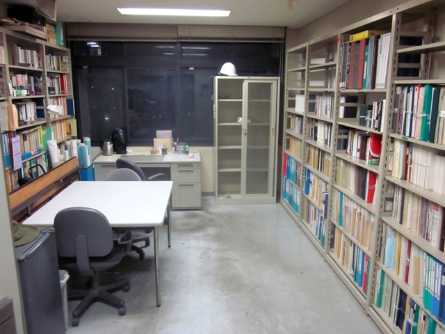 ◆この研究室は南向き、夏はたいへんである。いまの文学部の研究室は北向きで、こっちの方がよっぽどいい。文学部は90年代後半に改装したが、経済学部棟が建ったのはそれより前で少し古く、入ってみると、机は立派だが、本棚等はあまりなく、古びた木製のものもある。文学部では両壁ともスチールの本棚だが、経済学部の先生は、そんなに本棚はいらないのだろうか。新研究室については、またいずれ。