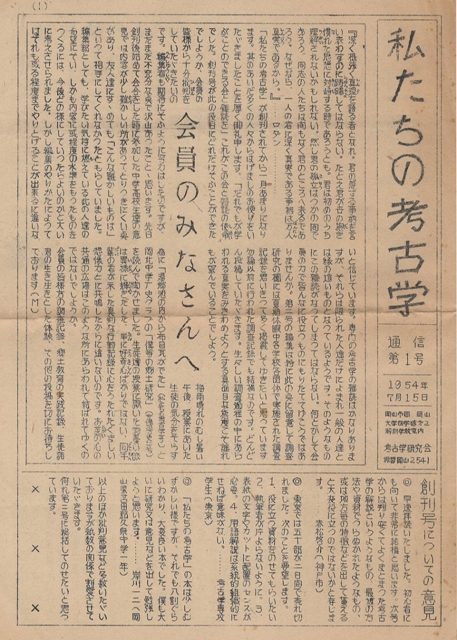 1954年7月15日『わたしたちの考古学』通信第1号