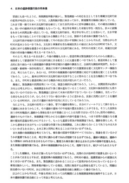 ◆今回の保存管理計画策定において、その重要性を明確にすること、変遷や各地区の内容を整理して遺跡の全体的・総合的なまとめをしっかりやること、そして史跡にして保存を図る範囲について十分検討するのが根幹だろう。いまの計画書(案)では、寺有地こそが本質で、多くの根来住人が暮らしていた子院の広がっていた平地部分は、根来にとって本質的で ない、と誤解されるのではないですか。繰り返すが、根来の場合、現実的な取り扱い判断以前の問題として、まず遺跡に即して史跡の範囲を考えるところがなっていない。