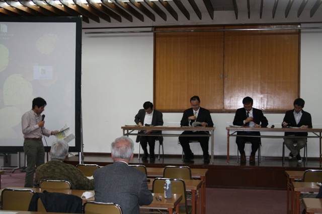 ◆11:00まで待って、遅れていた企画委員2人は午後の会場に行ってもらい、会場設営にかかる。午後、やっぱり集まりは悪い。関係者を入れても40弱というところか。発表者の1人は滋賀からで、京都駅まで来たがストップしているとの連絡が入り、行けないかも・・・との連絡も入り、阪急でとにかく来てくれと頼み、発表順を入れ替え、なんとか予定通り3人の報告をいただいた。発表もよかったし、人数が少ないのはとてももったいないが、いたしかたないところ。