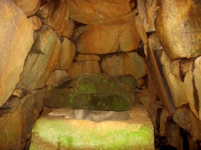 ◆ご対面~ん。じっくりと各石材をじろじろと観察する。貴重な機会をいただいた。終末期古墳の原稿を書いているが、石材の加工など勉強になる。7末に牽牛子塚を作り直したんなら、これに近い凝灰岩加工に進んでいたに違いない。刳り抜くのもたいへんだろうが・・・。