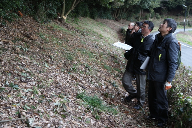 ◆さっきの下位のテラスだって視認はようやくというところもあり、まして改変を受けているその下のところで、テラスがあったかどうかは、なかなか確実に言えるところは少ない。そのなかで、前方部前面では、乱れはあるのだが、下段があって、その下にテラス面が通るとみた。そして、これに相当する側面のテラスは既に消失した範囲も多いと思われるが、前方部の西北隅部とか、南くびれ部とか、今回立ち入りが許された巡回路となっている幅の狭い通路のなかに、もともとテラス面だった部位に相当するものがあるように思われる。