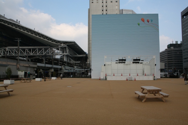 ◆まあ、こんなんですわ。ただのイベント広場。大阪駅への近道の通路になるんやろな。舞台の裏のコンクリートはよくわからんが、ここに玄関の部分が保存してあるのでしょうか。むろんこれは仮の姿。オリエンタルランドが撤退し、あと、別案の手があがることなく、更地にして、そりゃ一等地なので、開発を容易にし、うまい話があればたちどころにそれに乗り、土地は手放さず、郵政株式会社は借地料がコンスタントに入ってくるものにするのだろう。ごっついビルを一緒に建て、テナント料を稼ぐという路線もまだ期待しているのだろうか。いまの庁舎は大阪駅前ビルに入っているわけだが、そっちはそっちで手狭でないのだろうか。旧庁舎を改装して、使い続けてもらうのが、たぶんいちばんよかったのだろうが。