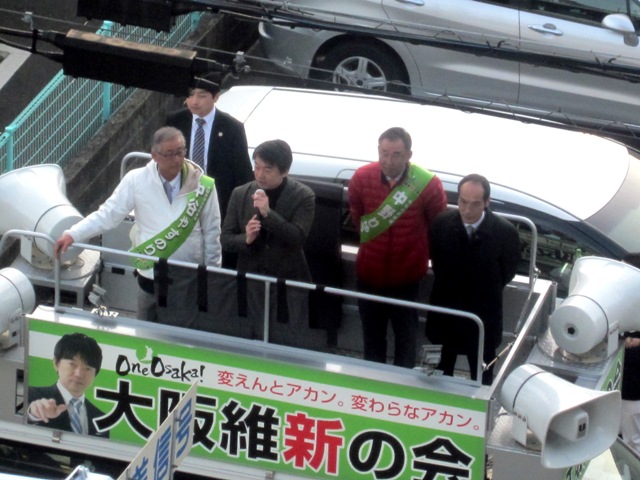 バルという名前が聞こえ、例の声が聞こえてきた。ベランダに出てびっくり、なにやら駅前に人が集まっているではないか。そうこうしているうちに、聞いたことのある声に変わった。維新の会代表のひとりである。ナマ橋下をまたベランダに見に行った。