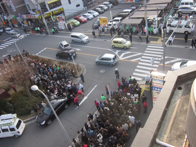 ◆2月3日、朝、いきなり選挙運動のガナリタテが始まる。国分駅前。娘がウルサイと起きてくる。たぶん8時からならOKな